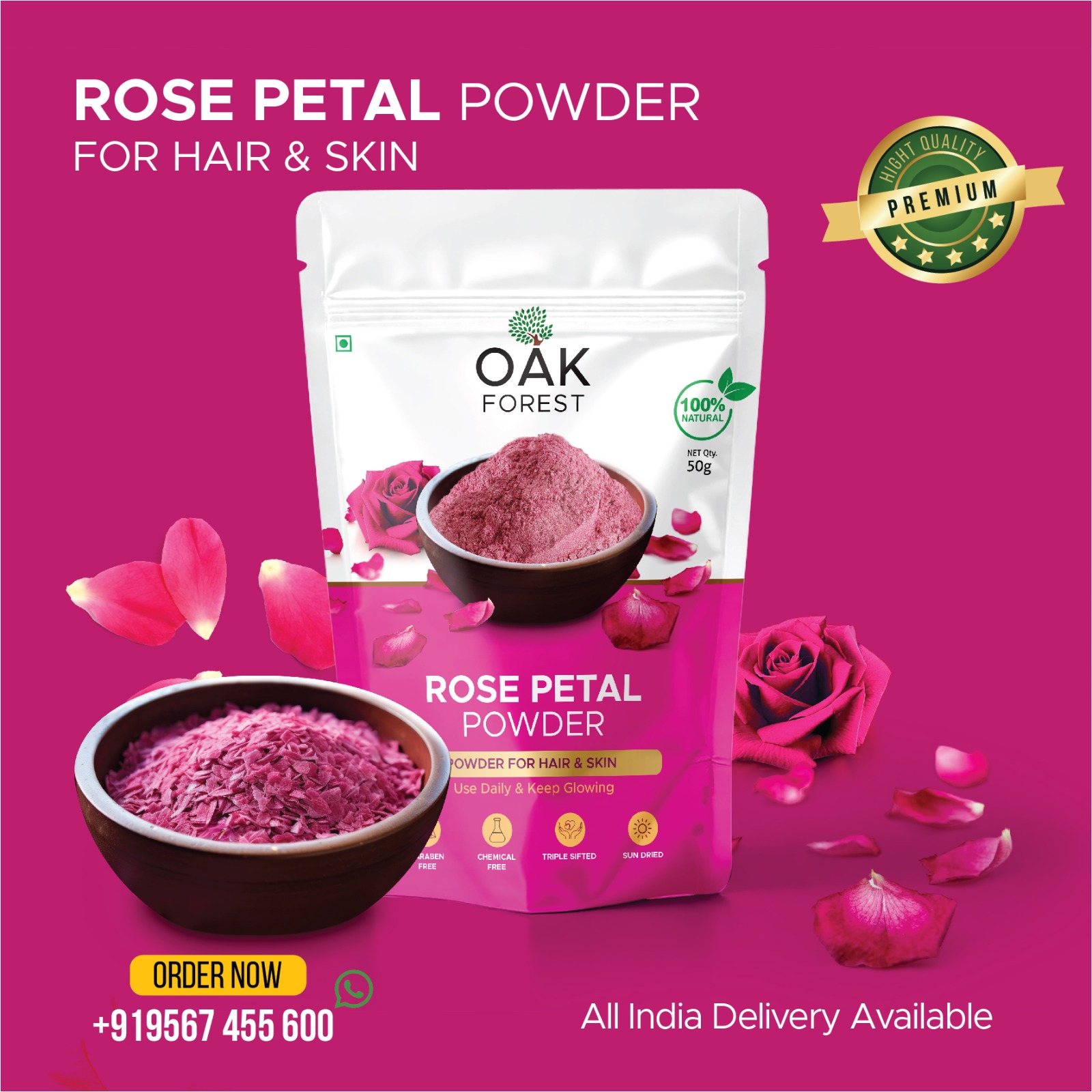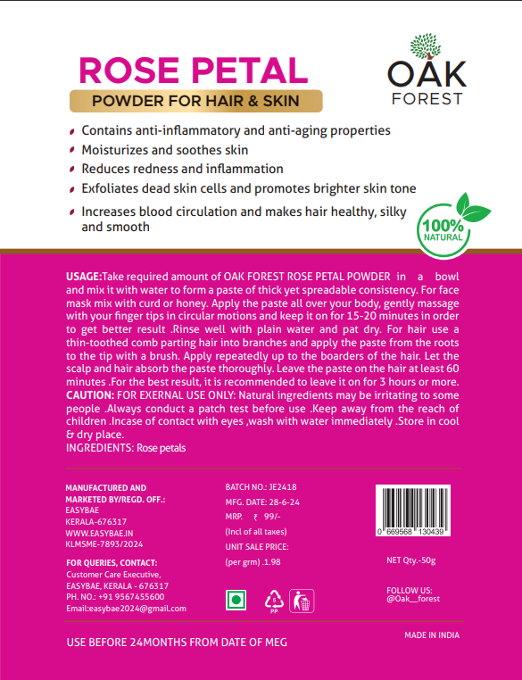 🌹 Oak Forest Rose Petal Powder – 100% Natural Care for Hair & Skin